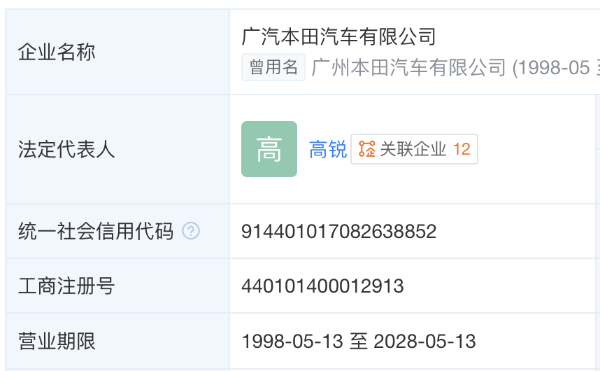 天眼查信息显示,东风本田汽车有限公司的营业期限是到2043年1月20日,而广汽本田汽车有限公司的营业期限是到2028年5月13日——距今只剩2年2个多月。